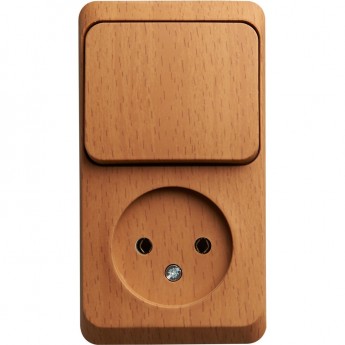 Блок SCHNEIDER ELECTRIC ЭТЮД: розетка с заземлением, со шторками + выключатель 2-клавишный, СОСНА, Россия